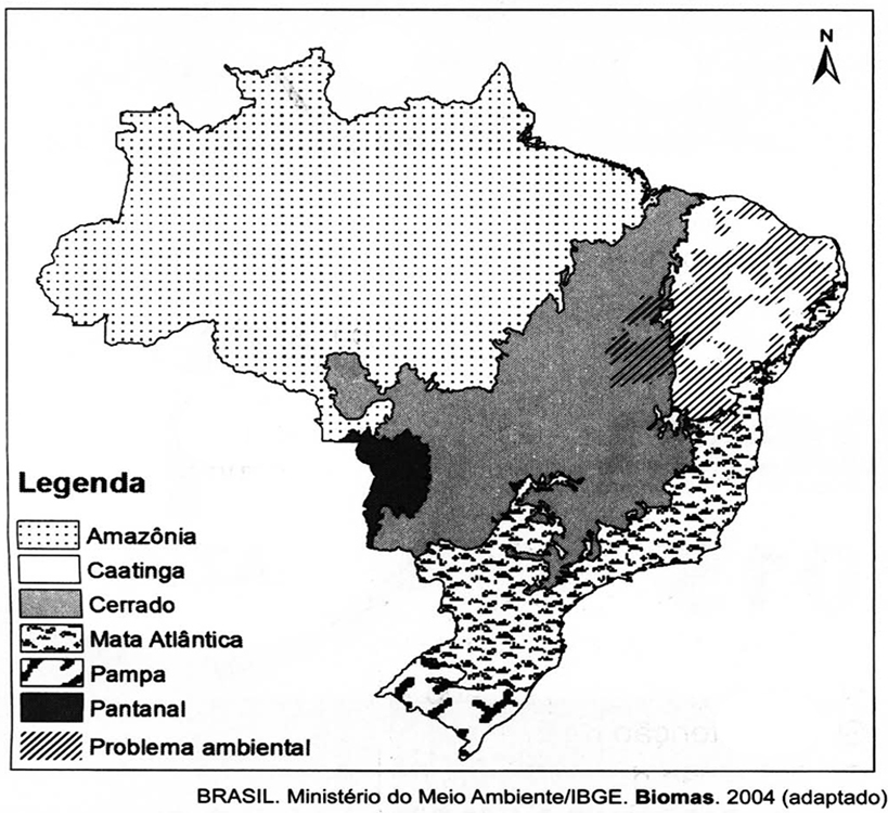 No mapa estão representados os biomas brasileiros que, em função de suas características físicas e do modo de ocupação do território. 0 0 redação 21/07/2021. Ministério do meio ambiente/ibge. No mapa estão representados os biomas brasileiros que, em função de. Ministério do meio ambiente/ibge. No mapa estão representados os biomas brasileiros que, em função de suas características físicas e do modo de ocupação do território, apresentam problemas ambientais distintos. Nesse sentido, o problema ambiental destacado no mapa indica. Desertificação das áreas afetadas. No mapa estão representados os biomas brasileiros que, em função de suas características físicas e do modo de ocupação do território, apresentam problemas ambientais distintos. Nesse sentido, o problema ambiental destacado no mapa indica: